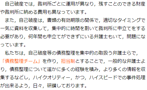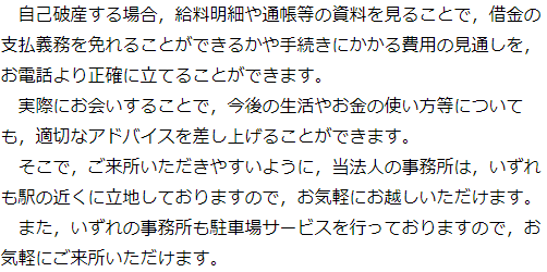 自己破産などの借金問題に関するご相談については、当法人は相談料を原則無料とさせていただいております。